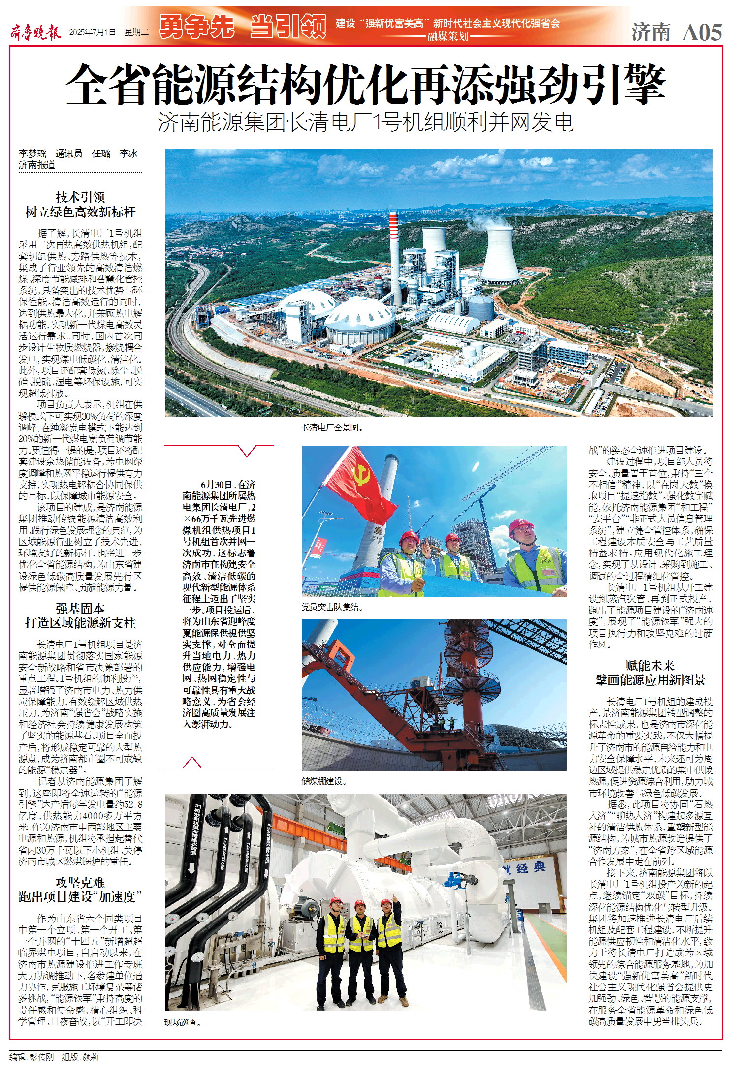 【濟(jì)南日?qǐng)?bào)】全省能源結(jié)構(gòu)優(yōu)化再添強(qiáng)勁引擎 濟(jì)南能源集團(tuán)長(zhǎng)清電廠1號(hào)機(jī)組順利并網(wǎng)發(fā)電