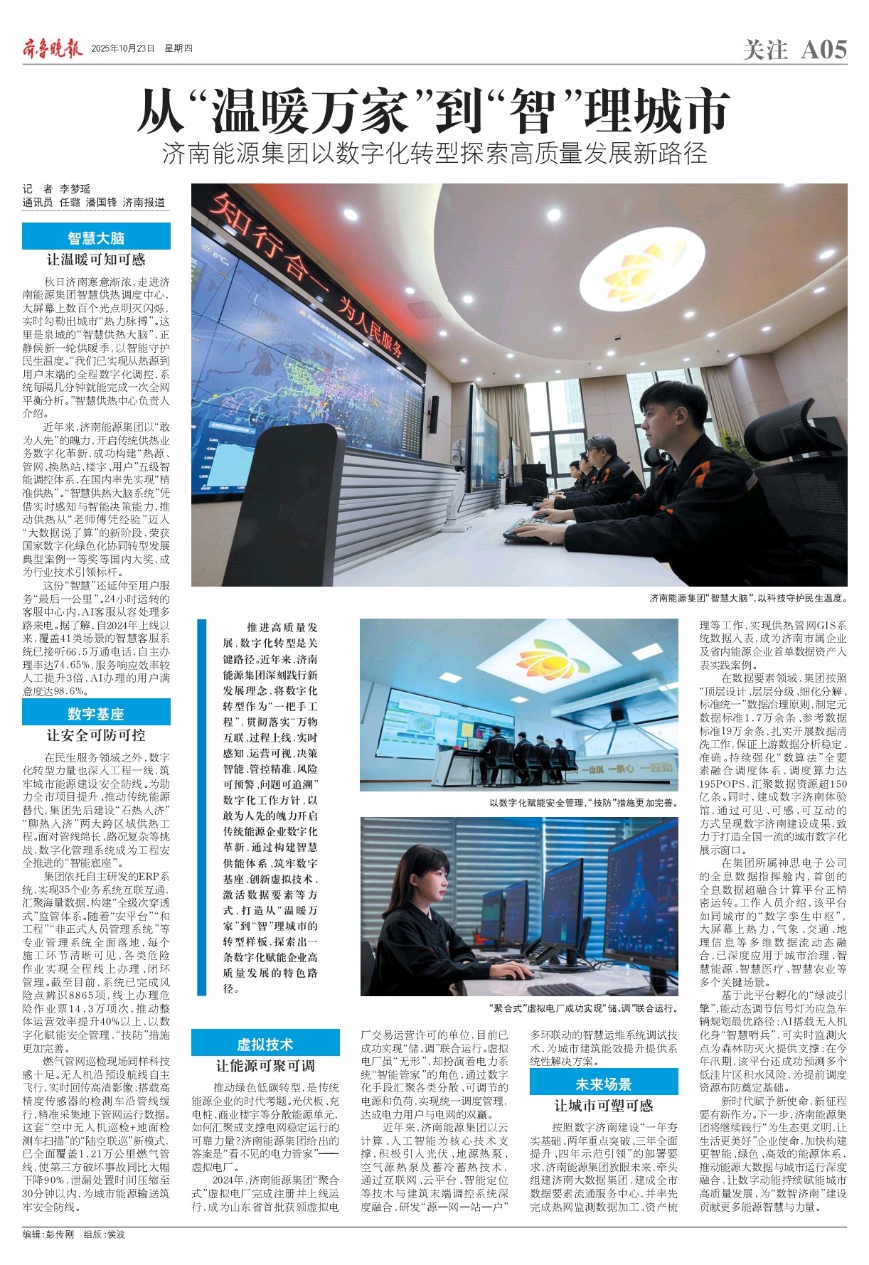 【齊魯晚報(bào)】從“溫暖萬(wàn)家”到“智”理城市 濟(jì)南能源集團(tuán)以數(shù)字化轉(zhuǎn)型探索高質(zhì)量發(fā)展新路徑